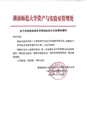 (通讯员:侯俊青)9月22日,学校实验室安全检查工作组莅临我院检查指导实验室安全管理工作。检查组传达了《关于学校实验室安全管理达标认定结果通知》,我院音乐技术实验室获学校实验室安全管理达标认定A级。贺南辉副院长、音乐技术实验室主任朱彦达老师向检查组汇报了近期安全管理工作及问题整改情况。随后,检查组到录音室、MIDI室进行了实地检查,要求学院进一步加强实验室安全日常管理与安全培训教育,更加注重细节管理,不断提高实验室安全管理水平。