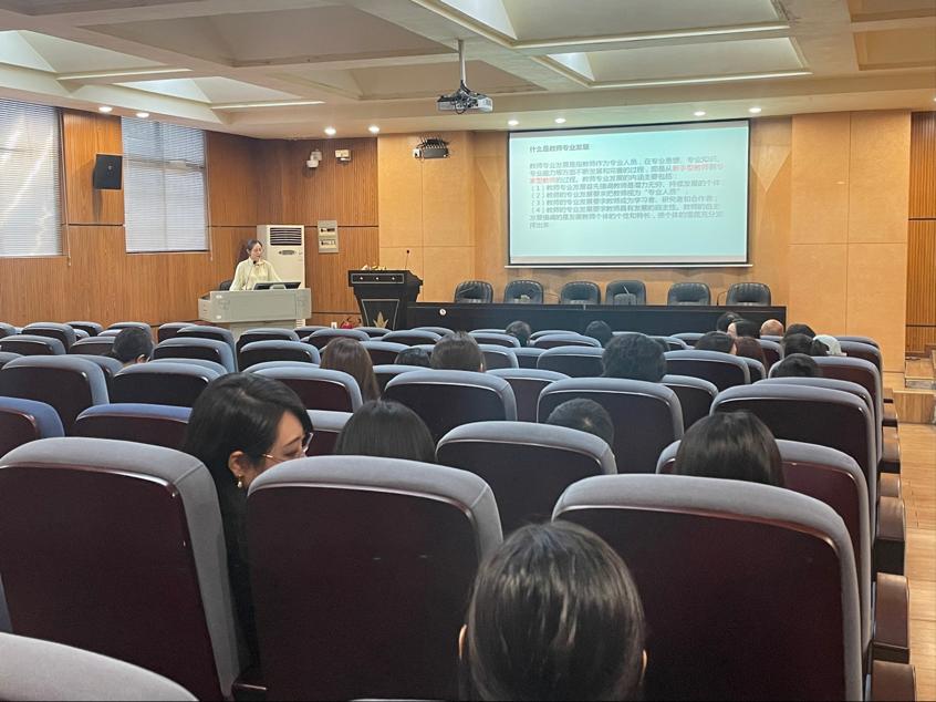 资教授结合自己作为国家一流课程建设负责人、主管教学的副院长、音乐教学法老师的身份及经历,围绕什么是教师专业发展、教师专业发展的特点、365英国上市集团教师发展的链条三个方面展开讲述。她首先强调,教师是潜力无穷、持续发展的个体,教师的专业发展要求把教师视为“专业人员”,要求教师成为学习者、研究者、合作者。其次她认为,教师应具有发展的多样性、自主性和持续性。高校是更新知识、创造知识的基地,对教师队伍有着高要求。教师除承载为社会源源不断输出人才的使命外,还要不断接受新鲜事物,追求前沿知识,扩展知识领域。最后,她以国家一流课程的建设为例,倡导青年教师要建立教育教学的新理念,鼓励青年教师勇于尝试教育教学的创新实践。