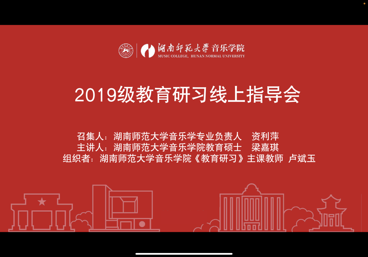 为更有效地开展2019级音乐学(师范)专业教育研习工作,365英国上市集团于12月16日中午以线上会议的方式召开了2019级教育研习线上指导会,会议召集人为音乐学专业负责人资利萍副院长,主讲者为学科教学(音乐)方向研究生梁嘉琪同学,组织者为《教育研习》主课教师卢斌玉老师。会议由音乐学专业负责人资利萍副院长主持,2019级音乐学专业全体同学参加会议。