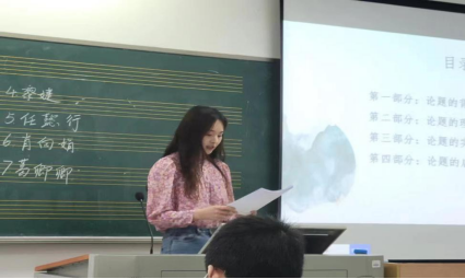 黎婕的论文题目为《能指”与“所指”视角下实验舞剧<湘绣女>的创作探索》论文以实验舞剧《湘绣女》为研究对象,使用符号学中“能指”与“所指”的跨学科研究方法将舞剧元素符号化,探索文学、湘绣作为舞剧成分由“象”及“意”的转换过程。期望通过对实验舞剧《湘绣女》创作过程具体化、核心内容文字化的梳理,为舞剧艺术的发展做出一定的贡献。刘小标老师充分肯定了黎婕同学的论文具有一定的学术价值,与此同时,认为该文章中出现了过多的专有名词且没有标注出处,具有一定模糊性。朱奕老师则提出相同的的建议,认为文章中不应该出现过多的中心词汇,论文应朴素简洁。