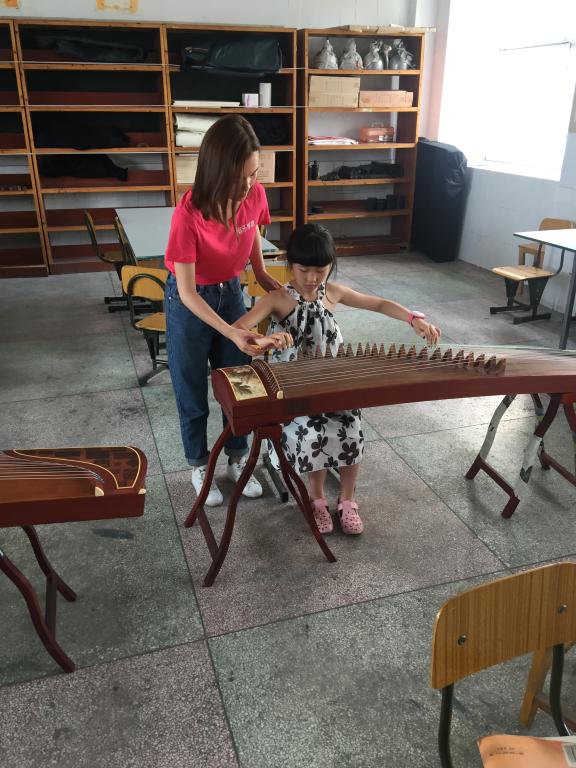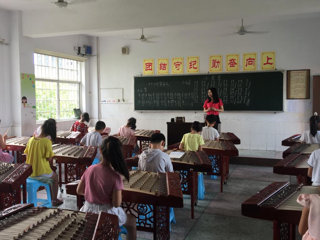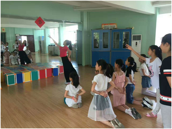 在实践首日,团队成员根据各专业模块小学生的音乐素养进行大致了解,随后进行整体的基本技能技巧训练。在合唱的发声、指挥的动作、古筝、扬琴的坐姿与手型、舞蹈的形体动作等方面进行纠正与规范。在接下来的一周中,研究生团队各成员将会对每个专业模块进行曲目的编排与指导