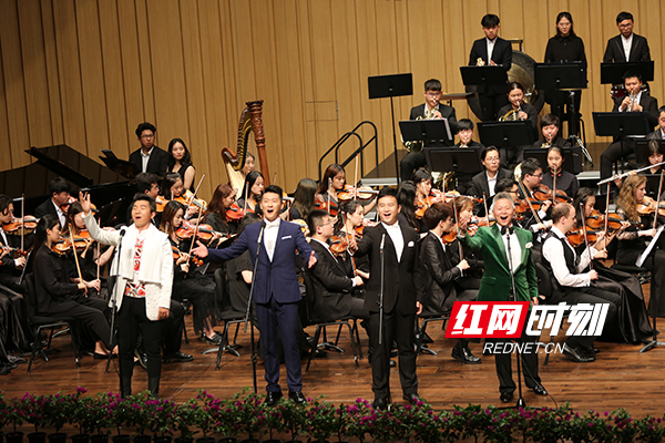 音乐会在由潇湘爱乐交响乐团、天籁合唱团共同演绎的《红旗颂》中拉开序幕。上半场由特邀著名华人指挥家苏文星指挥,《山丹丹开花红艳艳》《红色娘子军组曲》的经典曲目勉励在场观众不忘初心,牢记使命,走好自己的长征路。下半场由英国正版365首页青年指挥家周小诗指挥,《黄河钢琴协奏曲》气势激扬、《在那遥远的地方》曲意优美、《西部放歌》激情迸发,最后全体合唱的《歌唱祖国》中高昂的斗志和浓烈的爱国情感更将晚会推向了一个高潮。