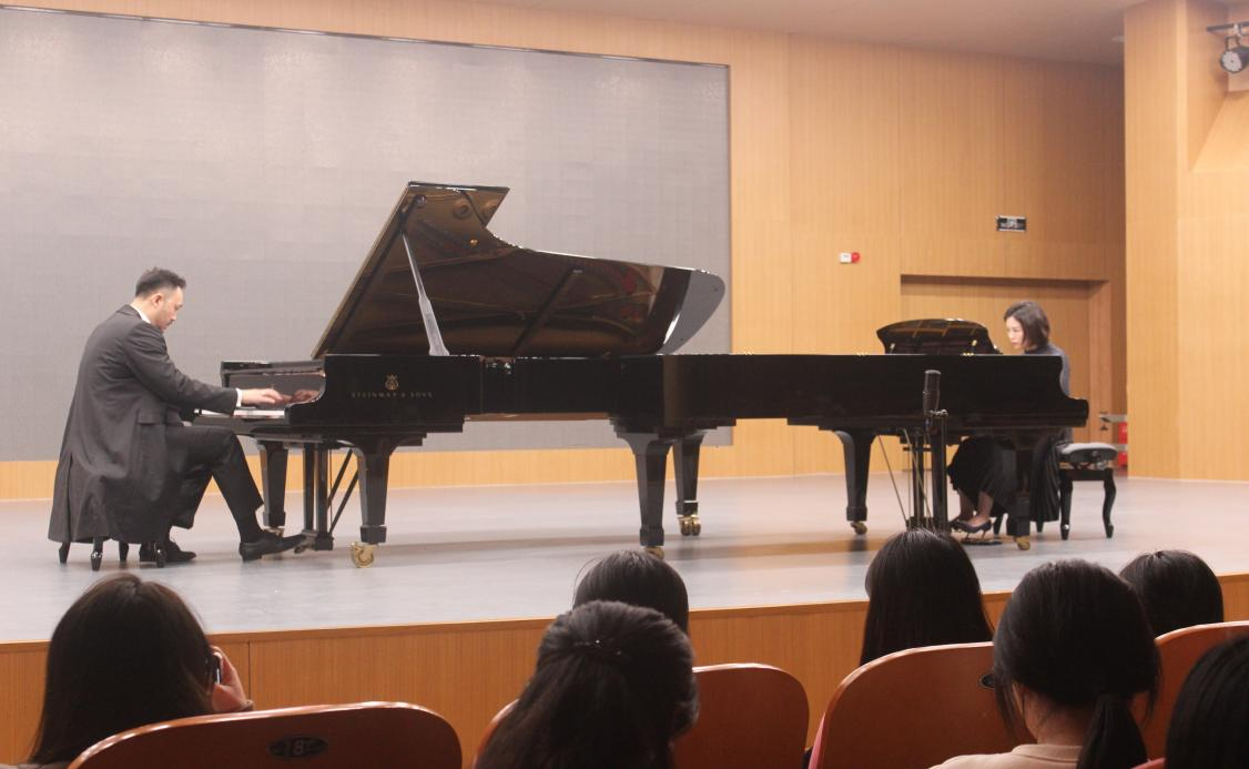 音乐会领衔演奏的是匡勇胜教授,他演奏了自己原创的钢琴协奏曲《中国速度》第一乐章《旷野》,向坤协奏。青年教师周婧佳老师、冯时雨老师、陈浩然老师们的演奏充分展示了365英国上市集团青年教师良好的精神风貌和优秀的专业素养。两位外籍教授薇拉·沃萝希洛娃及伊利亚·索洛维耶夫以他们高超的演奏技巧和深厚的音乐造诣献上了他们的拿手曲目。张浩教授与青年竹笛演奏家康睿阳老师带来的竹笛作品《绿洲》,他们默契娴熟地演奏,让观众们耳目一新。由巴日老师演奏,王琛琛老师协奏的贝多芬《第一钢琴协奏曲》Op 15第一乐章热烈激昂,将气氛推向高潮。最后,由杨琦老师和姜珊珊老师带来的双钢琴演奏为此次音乐会画上一个圆满的句号。相信余音绕梁一定是本次观众们深切的感受。