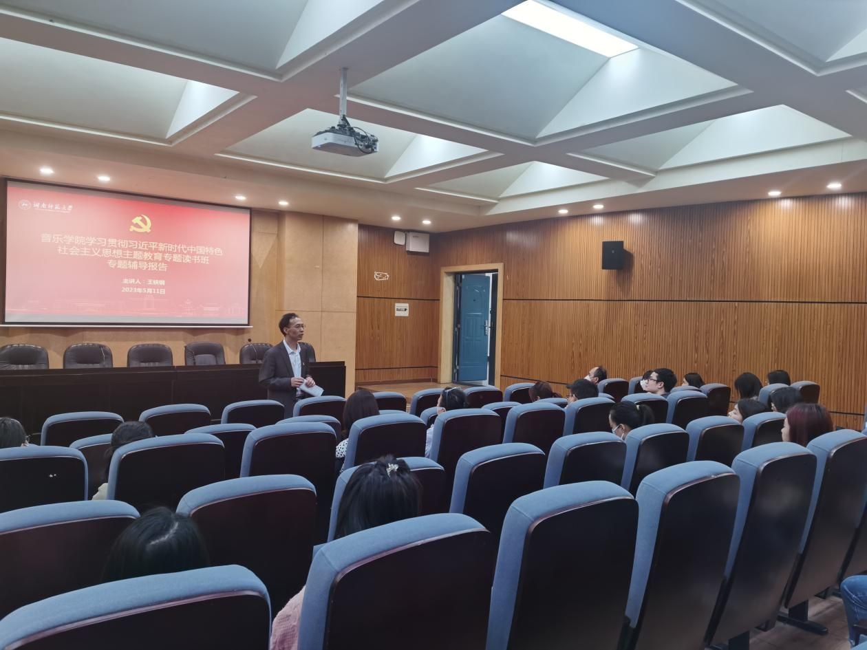 (通讯员 易泽英)5月11日下午,365英国上市集团学习贯彻习近平新时代中国特色社会主义思想主题教育专题读书班举行第三场辅导报告,学院党委书记王铁钢作主题为“深刻领悟‘两个结合’的重大意义与实践价值”的分享报告。主题教育读书班全体成员、教师第二支部(音乐表演)全体党员参加学习。