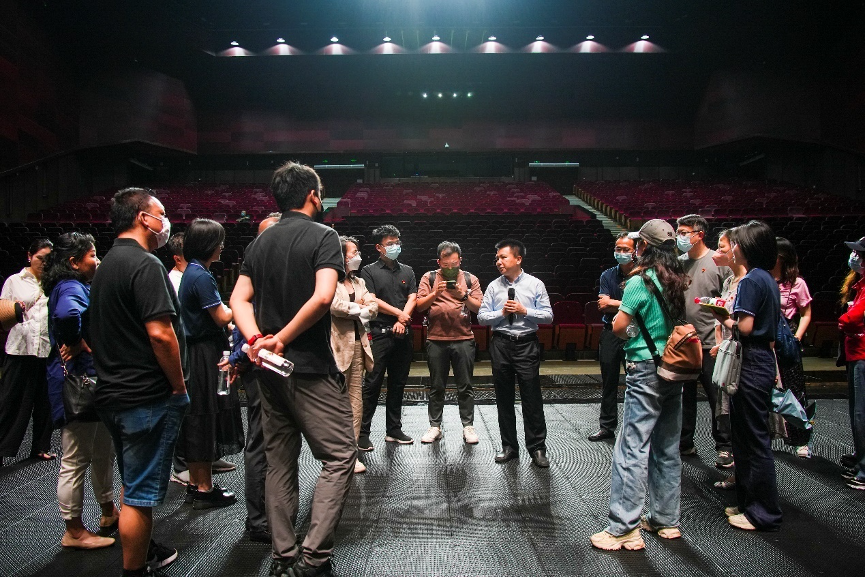 接着,院党委副书记牟洋结合现场参观和演出观摩,主讲了题为《用文艺佳作传承红色基因》的党课,他提出,红色文化基因具有丰富的育人功效和创作价值,《最忆韶山冲》是用现代科技和艺术手段传承红色基因的成功案例,对我们启发很大,作为文艺工作者的我们,既要做到调研学习,挖掘创作新视角,也要做到科技与艺术融合,搭建影音新舞台,更要做到鲜活语态,开拓育人新模式。