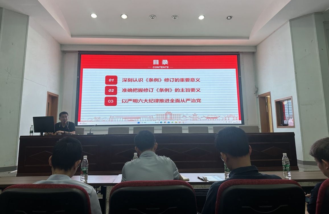 唐国华作了《贯彻执行新“条例” 为学校高质量发展保驾护航》的专题报告,他从深刻认识“条例”的重要意义、准确把握“条例”的主旨要义、以严明六大纪律推进全面从严治党等三个方面对“条例”的修订及主要内容进行了深入解读,并结合具体案例对政治纪律、组织纪律、廉洁纪律、群众纪律、工作纪律、生活纪律进行了剖析阐释,以案说法,以案明纪,告诫大家要警钟常鸣,牢固树立规矩意识和纪律意识,学纪、知纪、明纪、守纪,始终做到忠诚、干净、担当。