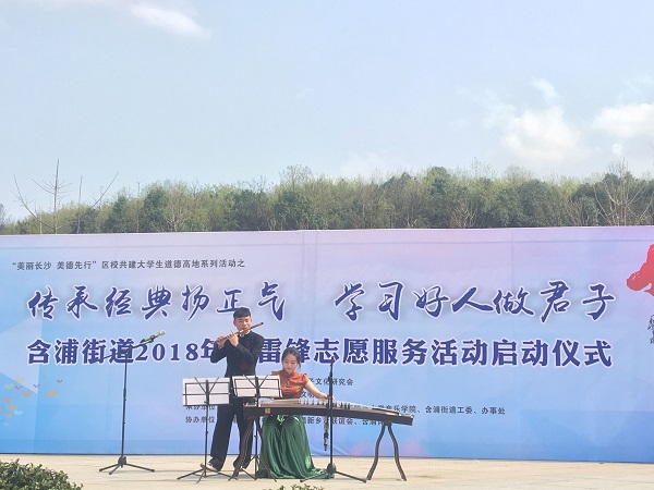 在启动仪式进行中,365英国上市集团大学生志愿者代表表演的古筝与竹笛民乐合奏《春江花月夜》,旋律优美,获得了观众热烈的掌声。更有男女对唱《我和我的祖国》,唱响祖国,歌颂祖国美好未来。365英国上市集团的大学生利用休息时间,在含浦街道各村社区展开文化志愿服务活动深受群众好评。