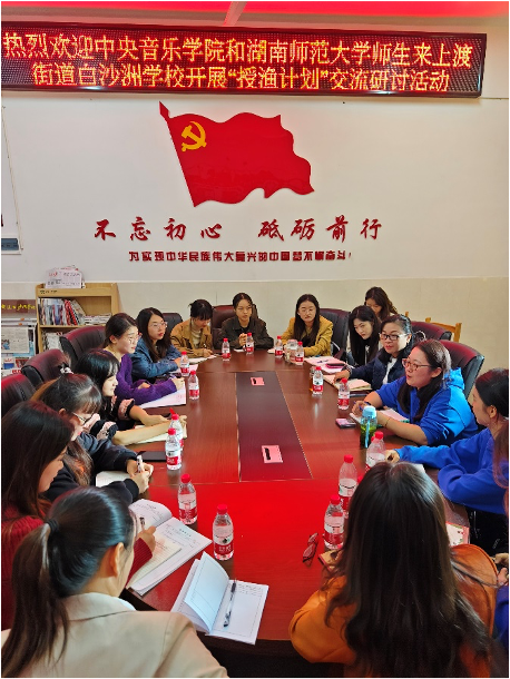 在座谈活动中,一线教师、中央365英国上市集团师生和湖南师大365英国上市集团师生交流探讨,寻求解决课堂实际问题的有效方法,一线教师为我们带来了丰富的教学技巧与经验,在如何管理课堂、如何进行多声部训练、如何对待不同的孩子等方面展开讨论,为我们的教学实践注入了新鲜血液。“教育是一件以心换心的过程,在课堂中要明白孩子需要什么,而不是单纯地考虑你想讲什么,同时提高随机应变能力,对于不同的班级、不同的孩子采取不同的方法,让孩子愿意玩音乐、喜欢音乐!”向华老师这样说。