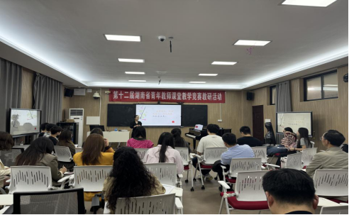 即将代表学校参加第十二届湖南省青年教师课堂教学竞赛的理论系青年教师戴明瑄讲授了“作品中的音乐要素感知”课程,她运用现代教育信息技术手段,基于对节拍、旋律、和声等要素的学习,以“和乐”为核心通过节奏律动、旋律感知等环节,引导学生在感知与领悟“声和”“音和”“乐和”“心和”与“人和”的过程中,体会中西方音乐文化的“和而不同”,感知音乐在构建人类命运共同体中的使命与担当。
