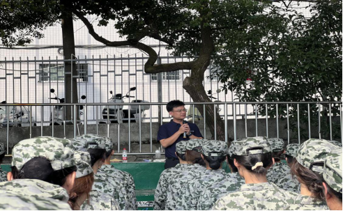党委副书记牟洋向同学们致以节日的问候和诚挚的祝福,鼓励同学们在军训中磨砺意志、锻炼品质,培养团队合作精神和集体荣誉感。同时,希望同学们珍惜大学时光,努力学习专业知识,为未来的发展打下坚实的基础。