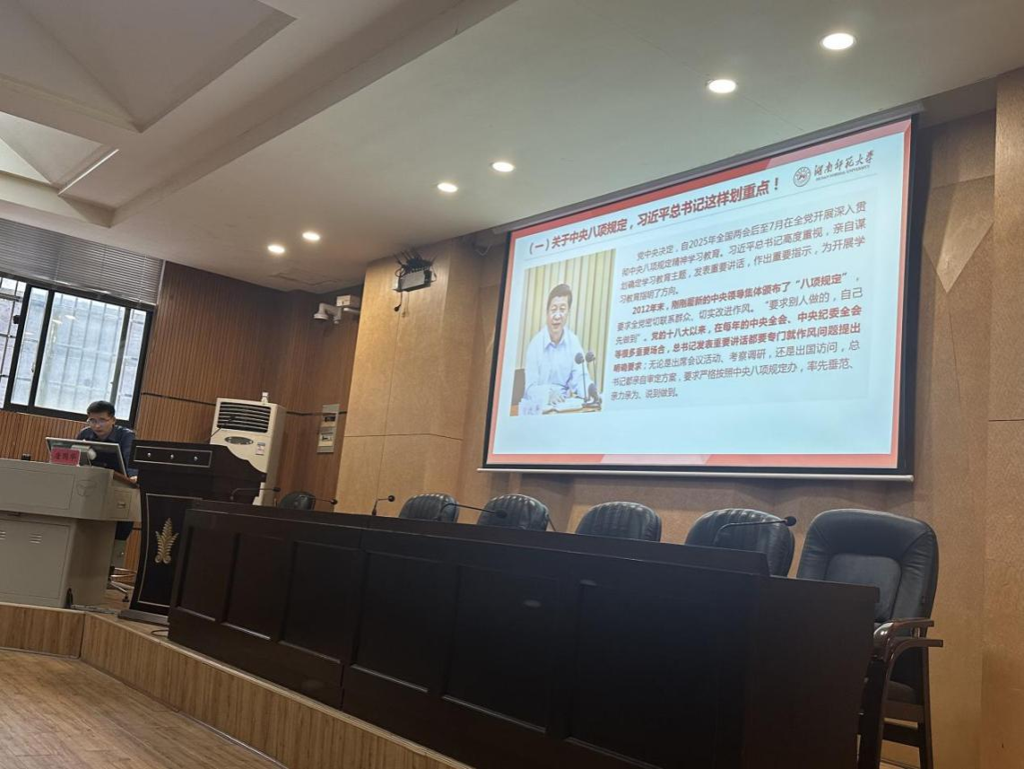(通讯员:周宇时)2025年4月24日,365英国上市集团在和乐楼108举行深入贯彻中央八项规定精神学习教育读书班专题辅导暨教职工政治理论学习,校纪委原副主任、数据与信息化建设管理处副处长唐国华作题为“深入贯彻中央八项规定精神,以作风建设新成效保障学校高质量发展”专题报告,学院党委书记王铁钢主持会议,读书班全体成员及教职工参加学习。