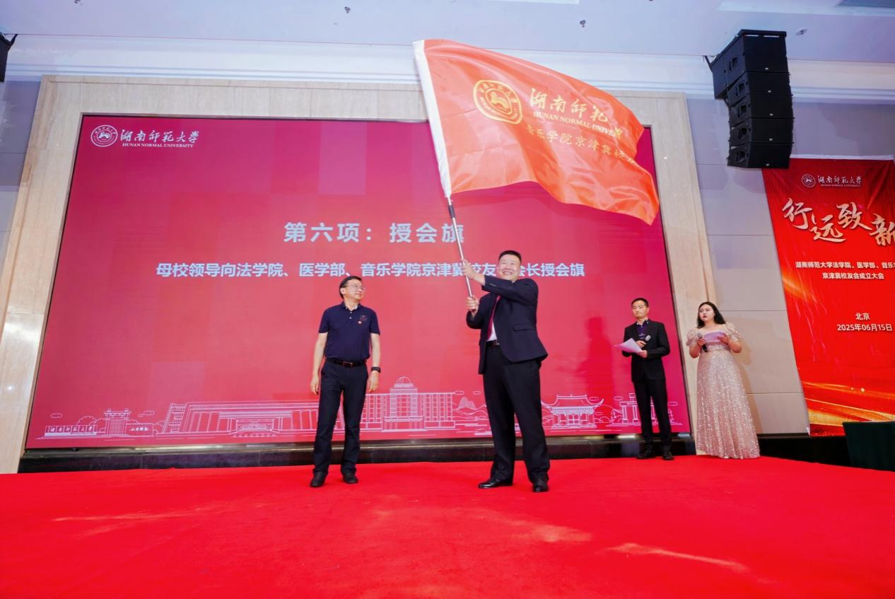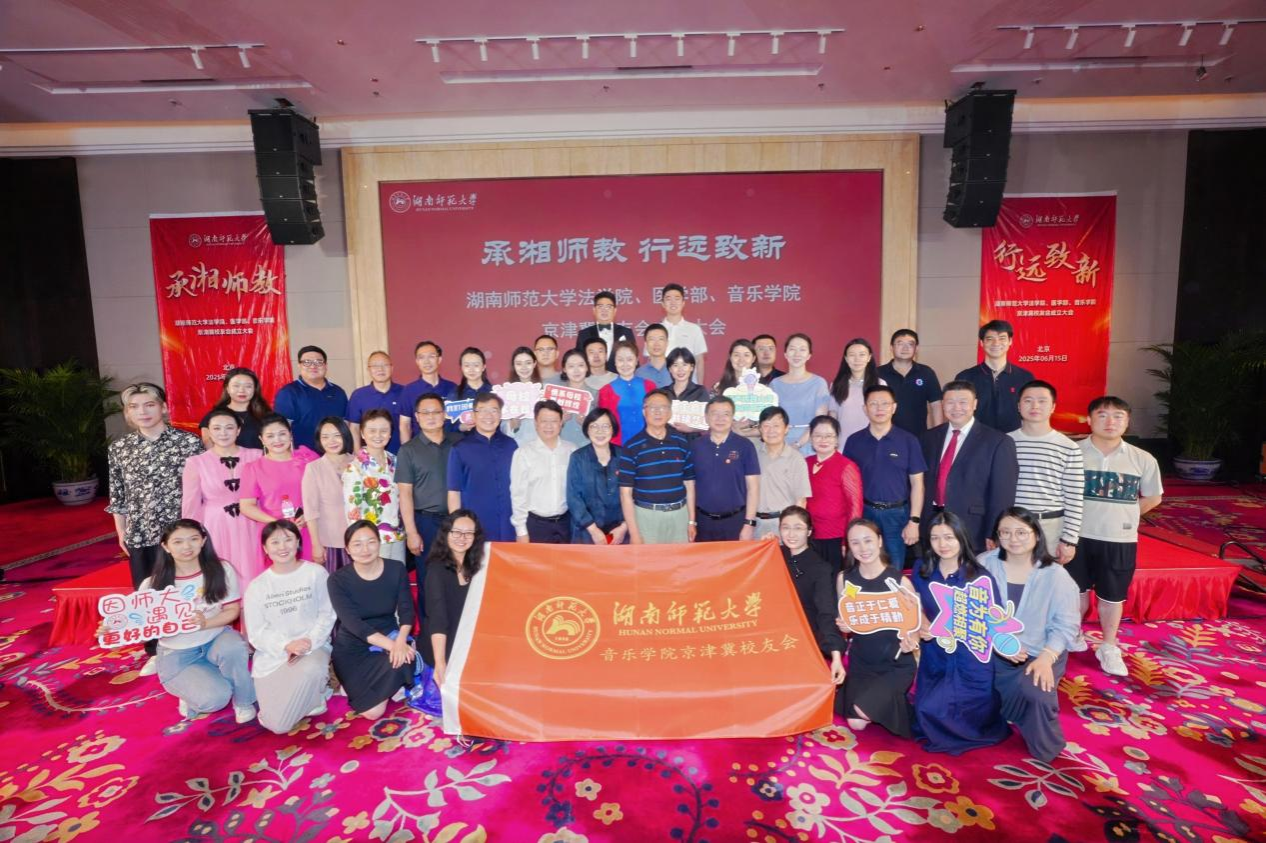 盛夏北京,湘情涌动。6月15日下午,我院与法学院、医学部京津冀校友会在北京联合举行成立大会。校党委委员、副校长刘怀德、原副校级督导、校关工委常务副主任徐书华、英国正版365首页京津冀校友会会长黄百炼、校友总会副秘书长余志华、校团委书记陈天嵩、基础教育发展中心副主任周熠、校友总会联络部主任袁鑫出席,院党委书记王铁钢、副院长贺南辉、钢琴系老师葛俭、声乐系老师钱树林及学工办老师文佳豪参加。