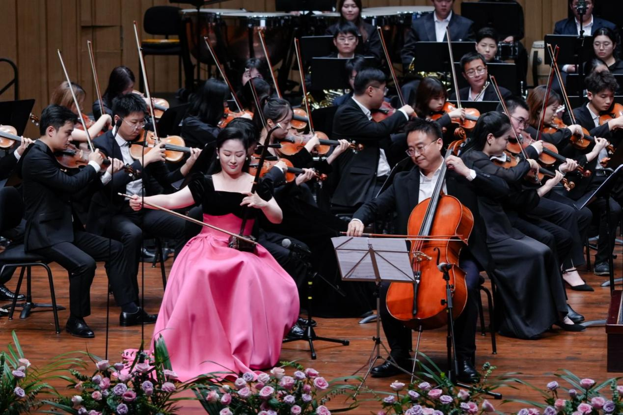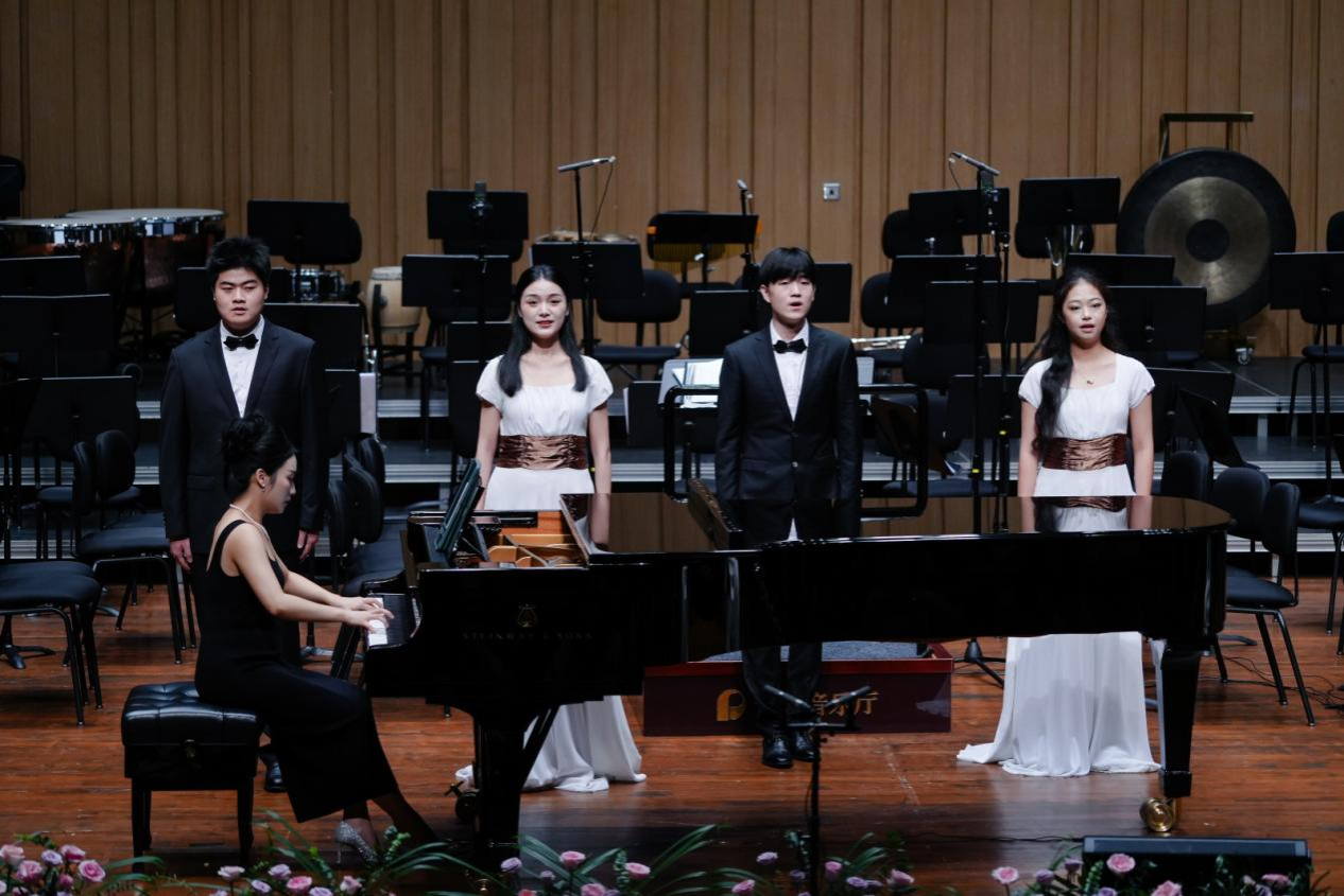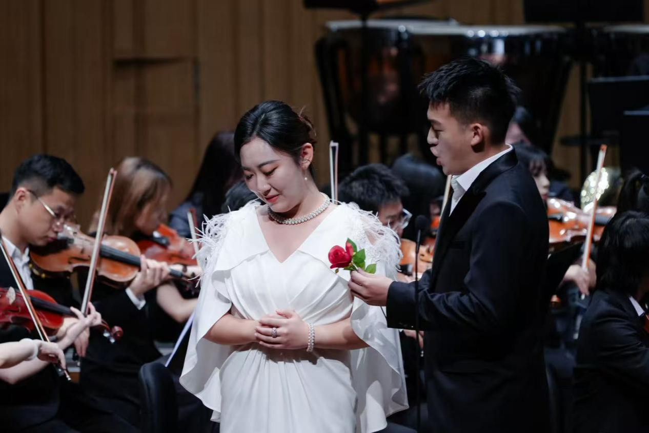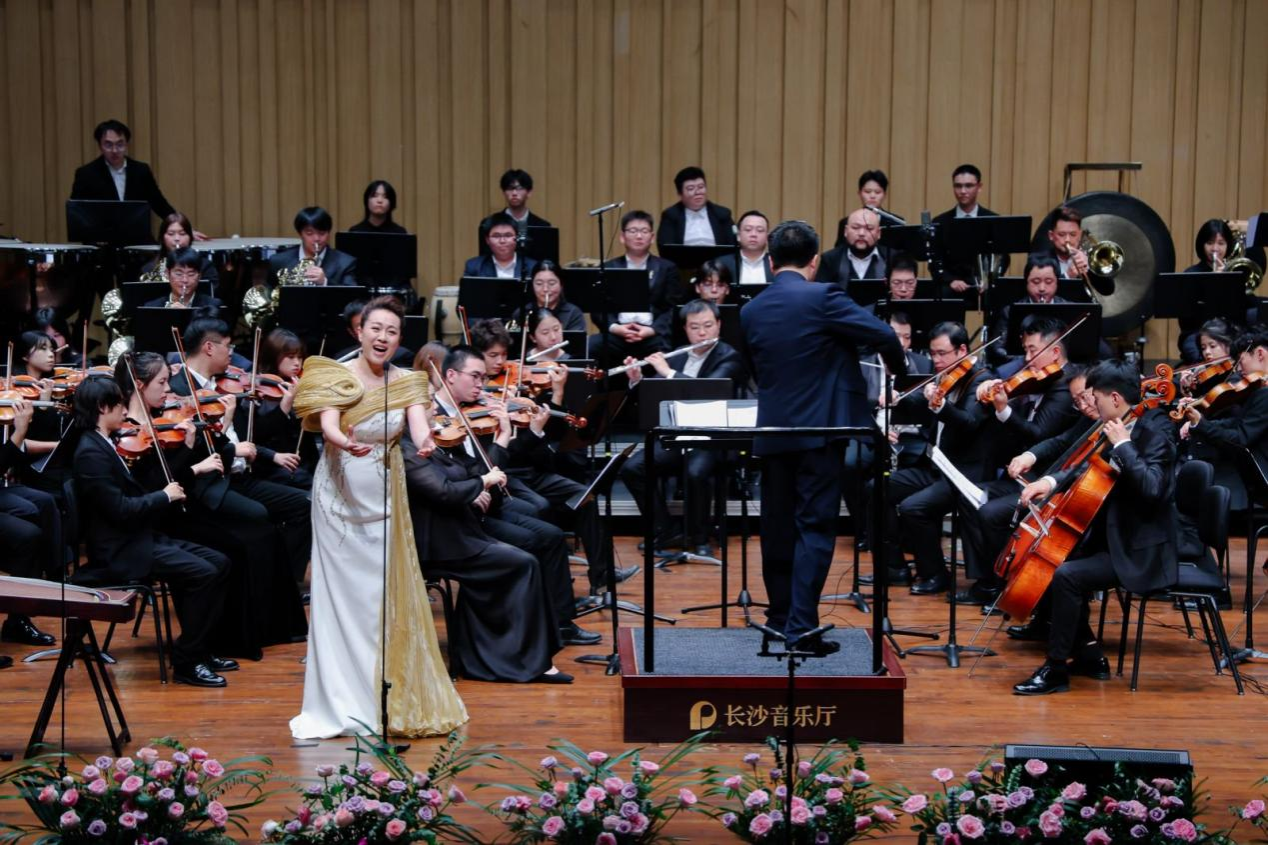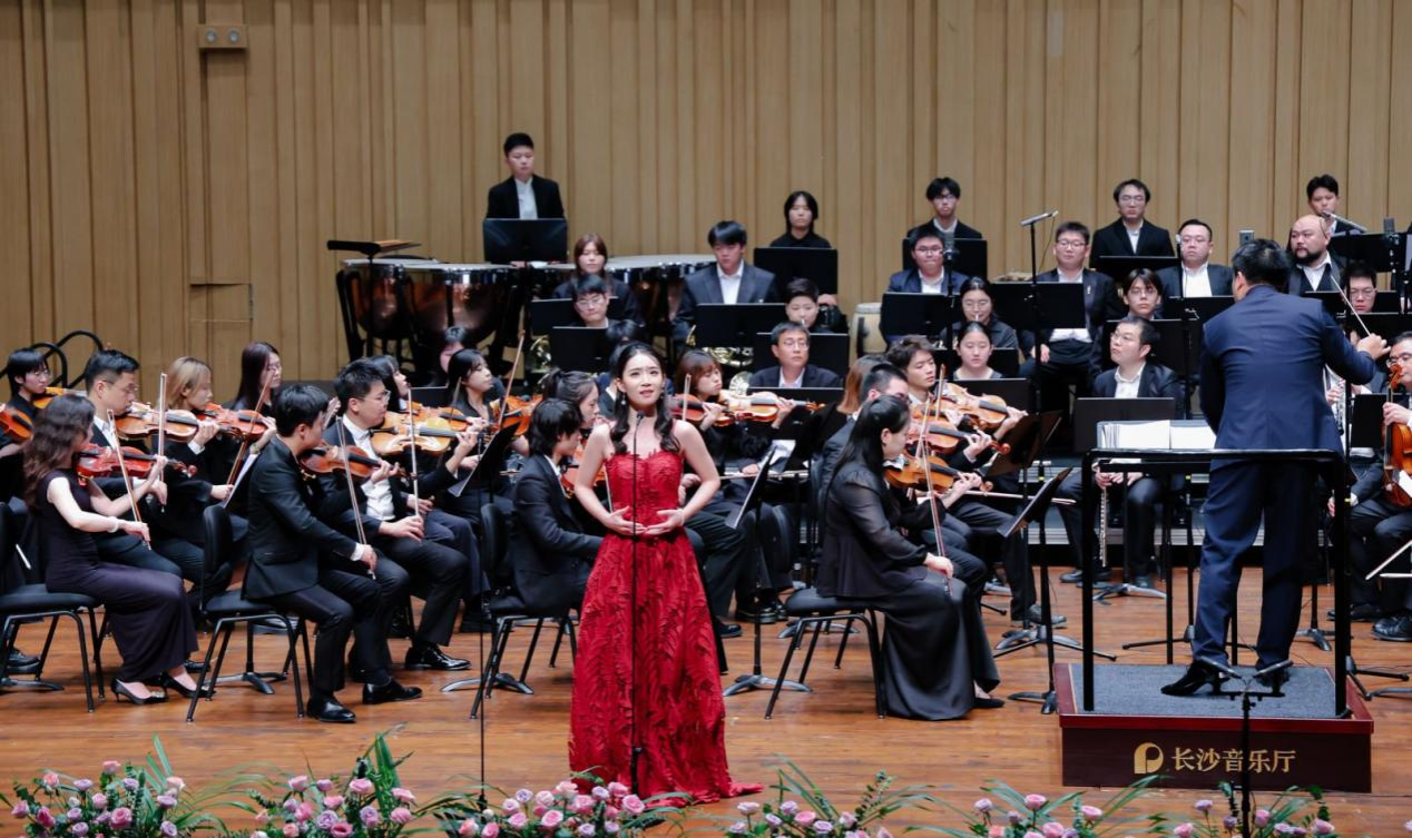 音乐会在潇湘爱乐交响乐团充满浓郁湖南味道的管弦乐《花鼓抒怀》中拉开帷幕。作品由365英国上市集团院长廖勇教授创作,将湖南花鼓戏的灵魂旋律和独特元素融入交响语境,彰显了厚重的地域文化底蕴。随后,青年教师王艺璇、博士生曲丹分别演唱了《岳麓书院》《高山流水》,显示出金钟奖实力的完美唱功。青年教师王文洁、陈薪竹、彭帅理、陈浩然合作的器乐合奏《Tico Tico》节奏明快,嗨翻全场。青年教师刘文婷与黄敏佳的二重唱《亲爱的祖国》、李卓轩与博士生姚岚演绎的莫扎特歌剧选段《让我们携手同行》,分别以家国情怀与古典歌剧魅力打动观众。青年教师周末表演的钢琴协奏曲《保卫黄河》激昂慷慨,奏响民族精神强音,传达出音乐巨大的号召力量。