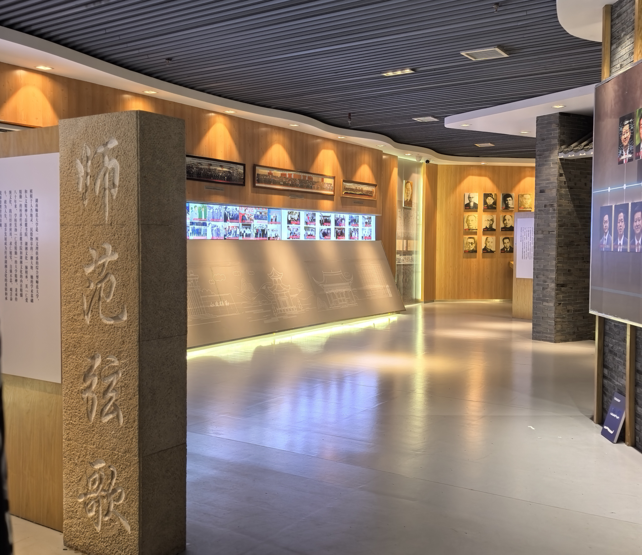 在讲解员带领下,新生依次参观序厅、师范弦歌等九大展区。序厅内“仁爱精勤”校训与校史实物交相辉映,助新生初步认知学校精神。“师范弦歌”展区,讲解员重点讲述1938年创办国立师范学院的初心,以及从蓝田迁址岳麓山、合并院校发展为“双一流”高校的历程,泛黄史料与文字记载让新生感受八十余载办学坚守。展区多媒体视听区、校区模拟沙盘等现代化展陈,让校史更生动,同学们还通过电子查询系统查阅校史细节。同学们表示,校史奋斗故事动人,将把校训精神融入艺术学习,传承师大人担当。