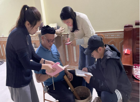 图3:越南考察团队对红瑶礼俗唱本的采访(2024年1月拍摄)