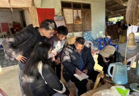 图5:老挝考察团队对瑶族礼俗唱本的采访(2024年1月拍摄)