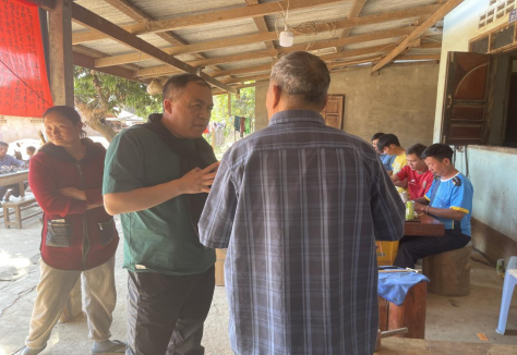 图4:赵书峰主任对老挝瑶族“挂灯”仪式前的采访(2024年1月拍摄)