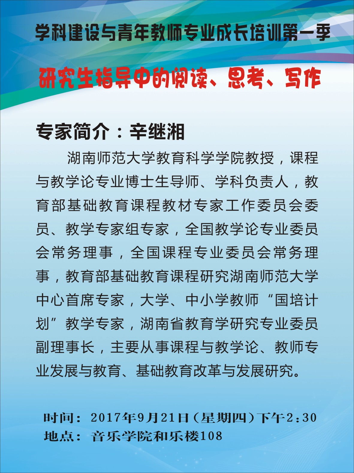 我校教科院辛继湘教授--研究生指导中的阅读、思考、写作