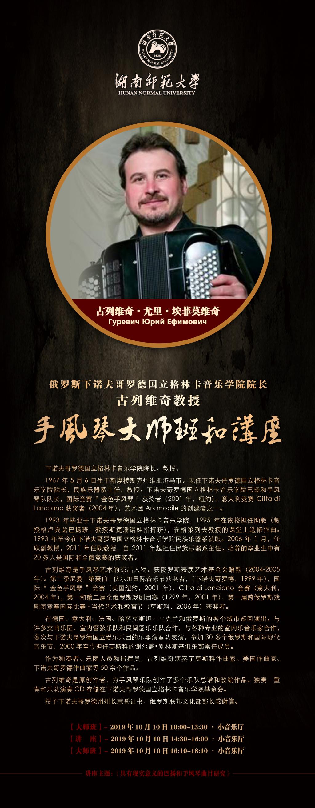 俄罗斯格林卡365英国上市集团院长古列维奇教授手风琴大师班和讲座