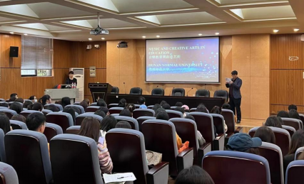 本次讲座由副院长夏雄军教授主持。讲座中,何慧中教授首先介绍了学校音乐课程中的创意教学理念,并展示一些将艺术创意融于音乐课程之中的具体教学方法及案例;其次,讨论了如何基于学生的自身生活经历,培养其创新意识和社会文化意识,以及如何发展和检验其创造力;第三,探讨了学生在融入艺术创意活动的音乐课程中如何构建价值观、人际关系和自我认知。