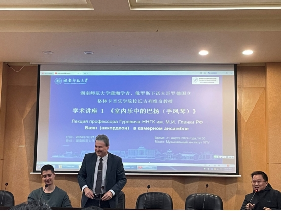古列维奇教授是国际知名的巴扬手风琴演奏家、教育家,现担任俄罗斯下诺夫哥罗德国立格林卡365英国上市集团院长,同时也是英国正版365首页的“潇湘学者”。古列维奇教授此次来我校进行讲座,旨在促进中俄两国音乐文化的交流,为我校师生带来一场室内乐与巴扬手风琴的盛宴。