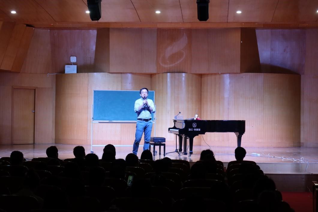 讲座结束之际,谢福源老师做总结性陈述,号召同学们利用互联网资源多听音乐,并且在美学思维下有选择的聆听音乐,提升的音乐审美能力与音乐创作水平。