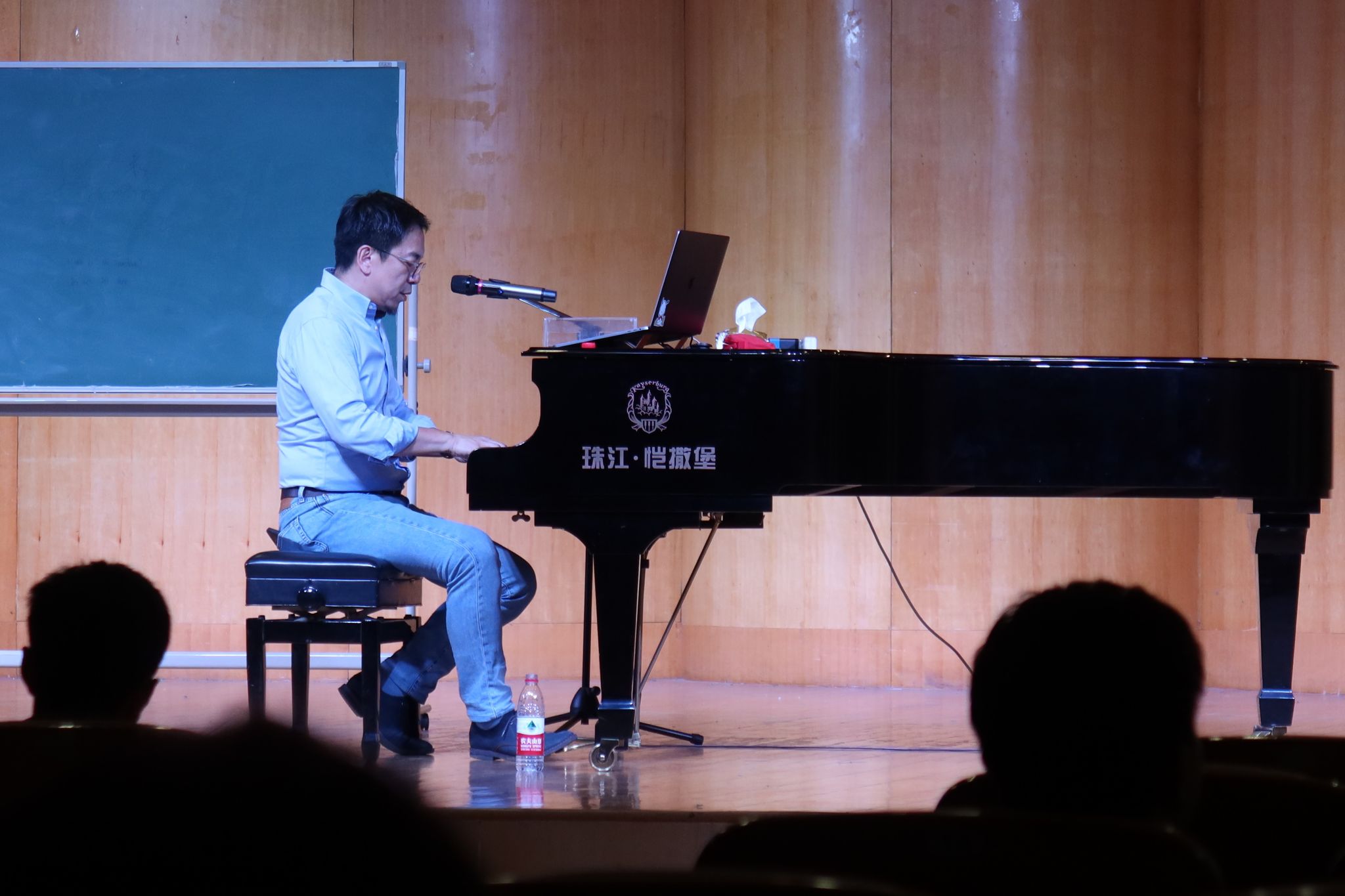 最后的师生互动提问环节,现场气氛愈发热烈。学生们积极提问,薛位山老师耐心答疑。他反复强调学习音乐创作过程中,从扒歌练习开始,勇敢模仿,精准复刻,理解音乐,这就是最好的学习方法。