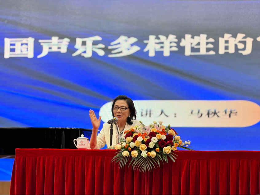 马秋华老师不仅分享了她在声乐教学过程中的宝贵经验,还详细阐述了她的艺术主张。她强调,声乐艺术不仅仅是声音的展现,更是情感与文化的传递。在演唱过程中,要注重情感的真实流露与深刻表达,使每一句歌声都充满灵魂与力量。同时,她还鼓励年轻学子们要勤于思考,勇于实践,不断提升自己的艺术修养和综合能力。