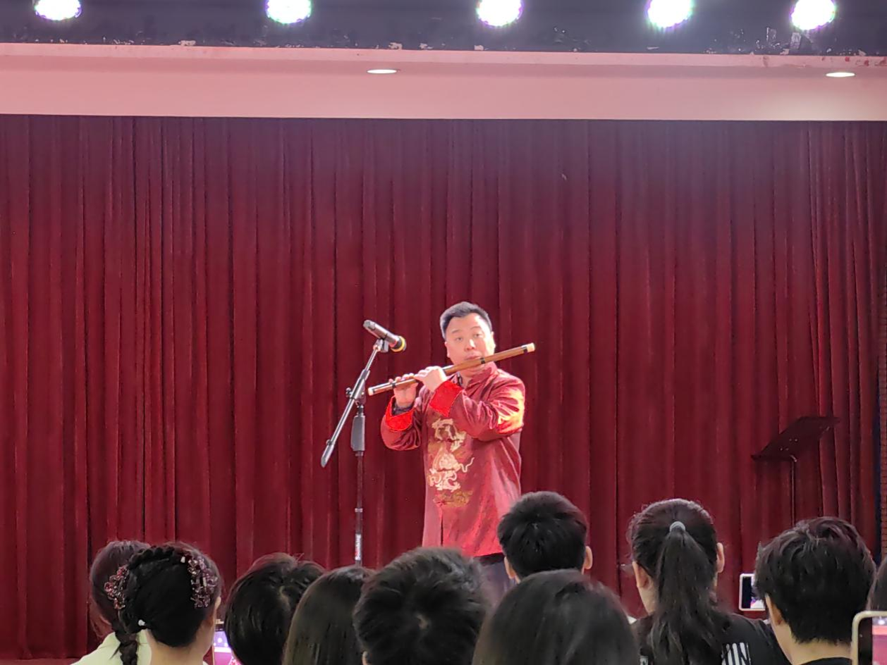 讲座下半场,艺术家们通过现场表演展现了昆曲的艺术魅力。邓建桃女士以清唱形式演绎《玉簪记·琴挑》,婉转唱腔尽显南曲的柔美;鄢辉亮老师则用笛子独奏《牡丹亭·游园》,以北曲的高亢激昂诠释杜丽娘的情思,南北曲交融的表演赢得阵阵掌声。国家一级演员刘娜老师压轴登场,献唱《牡丹亭·寻梦》选段,其“声、情、形”三位一体的表演,将昆曲“无声不歌、无动不舞”的美学特质展现得淋漓尽致。