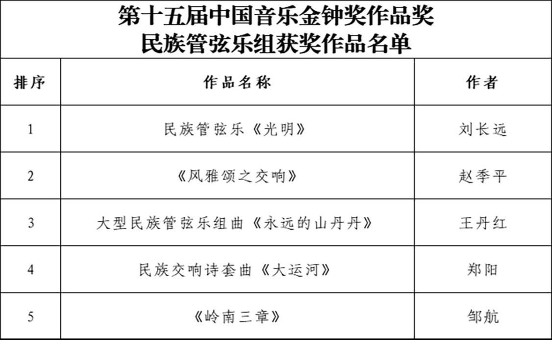 (通讯员 周慧娴 竺梦媛 廖梓雯)近日,中国音乐家协会公示第十五届中国音乐金钟奖作品奖拟获奖名单,我院名誉院长、特聘教授赵季平先生的作品《风雅颂之交响》荣列金钟奖交响乐作品民族管弦乐组获奖名单,为我院艺术教育事业再添殊荣。