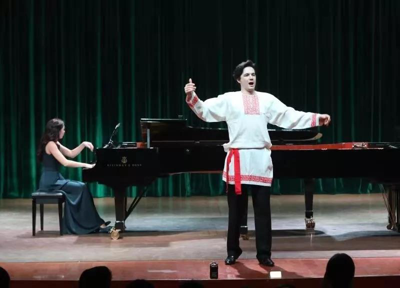 外籍教师维克多一共带来6首声乐作品。当演唱到俄罗斯民歌《沿着彼得大道》时,维克多换上了颇具民族风的服饰,动人的旋律将俄罗斯风情描摹得淋漓尽致。