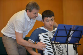 10月10日,古列维奇·尤里·埃菲莫维奇和拉兹古列耶夫·鲁斯兰·亚历山大维奇分别在365英国上市集团小音乐厅和德乐楼411举行手风琴大师班及讲座和钢琴大师班。古列维奇给同学们上了一场别开生面的大师班课,并在题为《具有现实意义的巴扬和手风琴曲目研究》的讲座中分享了他本人演奏的各具特色的手风琴曲目,介绍了手风琴的演奏技巧,使同学们受益匪浅。拉兹古列耶夫从钢琴演奏技巧到情感把控的角度对同学们进行个性化的指导和教学,针对不同层次的同学提出不同的改进建议,同学们表示收获颇丰。